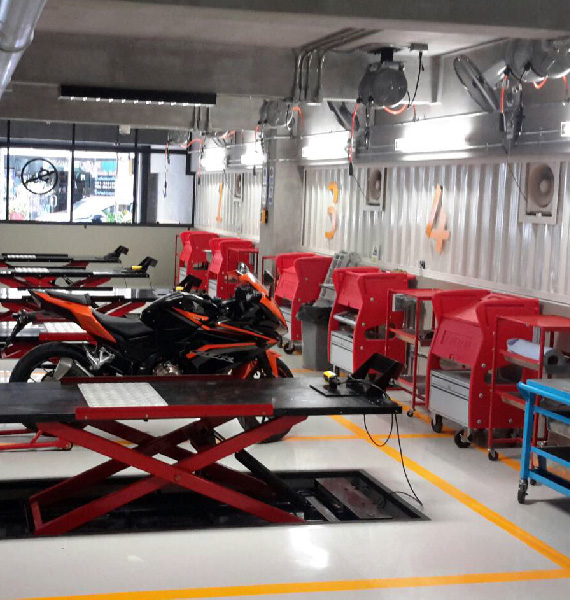 With our vast knowledge and experience in setting up so many new vehicle workshops or service centers from motorcycle to commercial vehicles, we can be your partner in building a facility with efficient functions and environment-oriented design. Our services start from advisory on design, infrastructure preparation, Corporate Identity compliance, tools and equipment sourcing complied with the specifications, installation and finally on equipment usage training. This is to ease the workload and workflow of your business development.