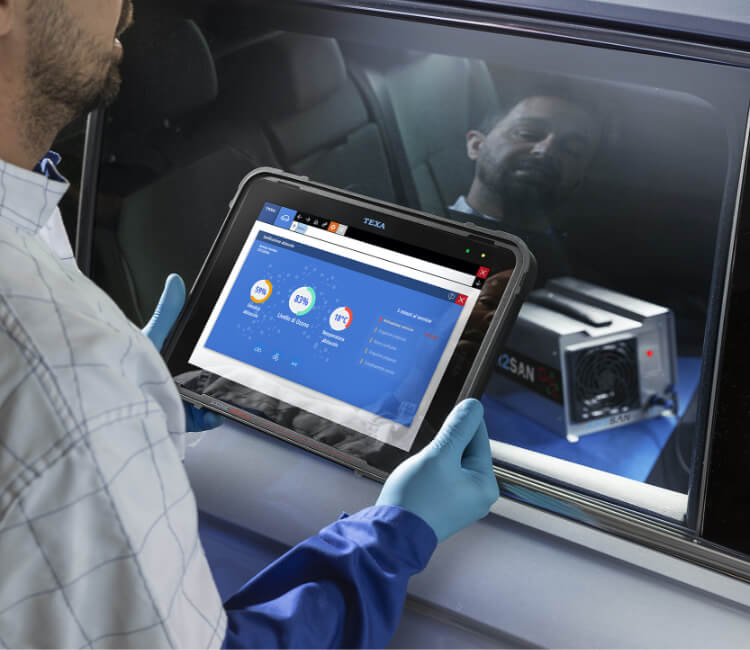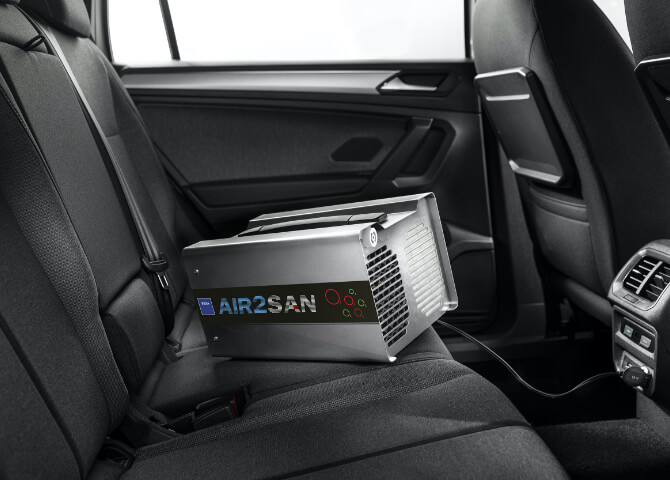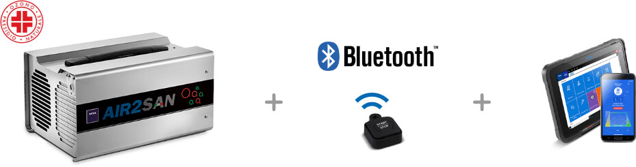 โดยการผลิตโอโซนปริมาณที่เหมาะสมในการฆ่าเชื้อและกำจัดกลิ่น ที่เหนือกว่าผู้ผลิตรายอื่น คือ AIR2SAN สามารถเปลี่ยนโอโซนกลับไปเป็นออกซิเจนได้ เพื่อให้ห้องโดยสารรถยนต์หรือห้องที่อยู่อาศัย ปลอดภัยในการกลับเข้าไปอีกครั้ง ทั้งนี้ยังสั่งการผ่าน Application ในมือถือได้ทั้ง Android และ IOS นอกจากนี้เครื่อง AIR2SAN ยังมีระบบกรองอากาศผ่านแผ่นกรอง HEPA เพื่อกรองฝุ่นได้อีกด้วย